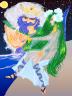 イリスを1つ。10年ほど前に描いたペン画のイリスですが…薄物ではなく、全裸です。わたしのこの時のイメージは、恐らく「イリスの石」のイメージが強く、馬車を引いているのも馬ではなく、ドラゴンというイメージでした。