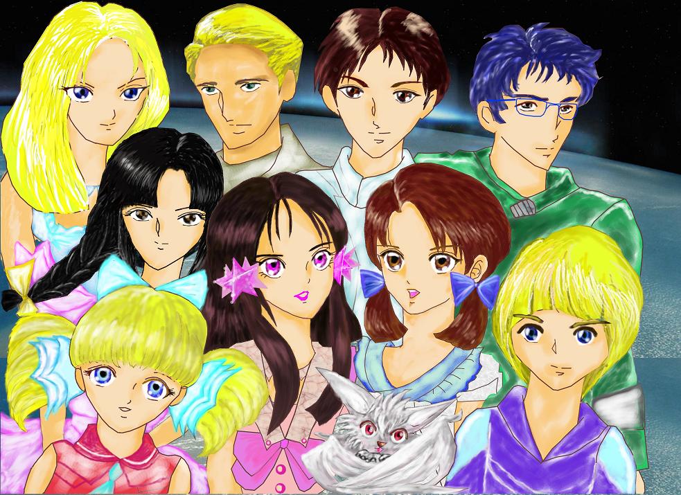 GD21(ゴッドアンドデーモンVer21)の戦闘に向かうハルナの友人たち9名の集合イラストです。 |