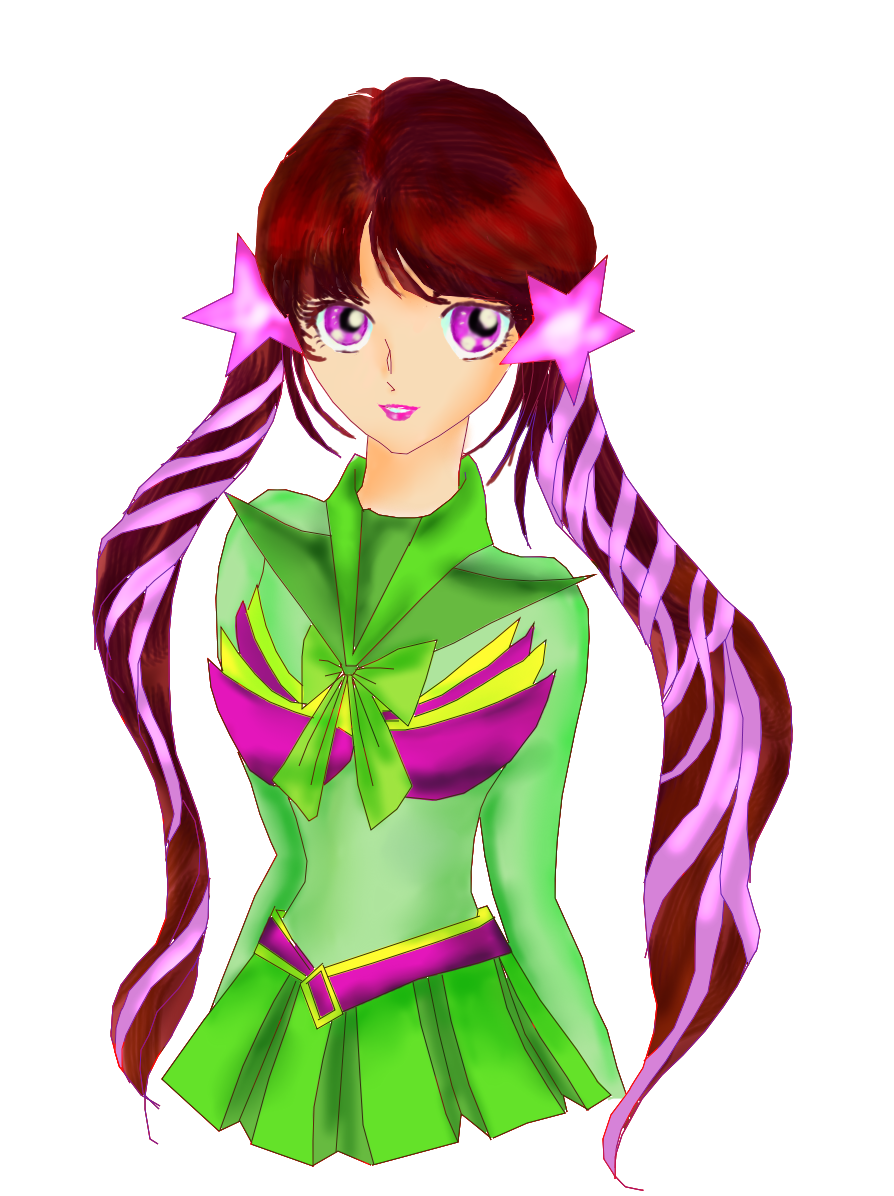 バストアップイラストなのでわかり辛いですが、一応、ミニワンピ+エメラルドグリーンのエプロン姿エリナ・イーストです |